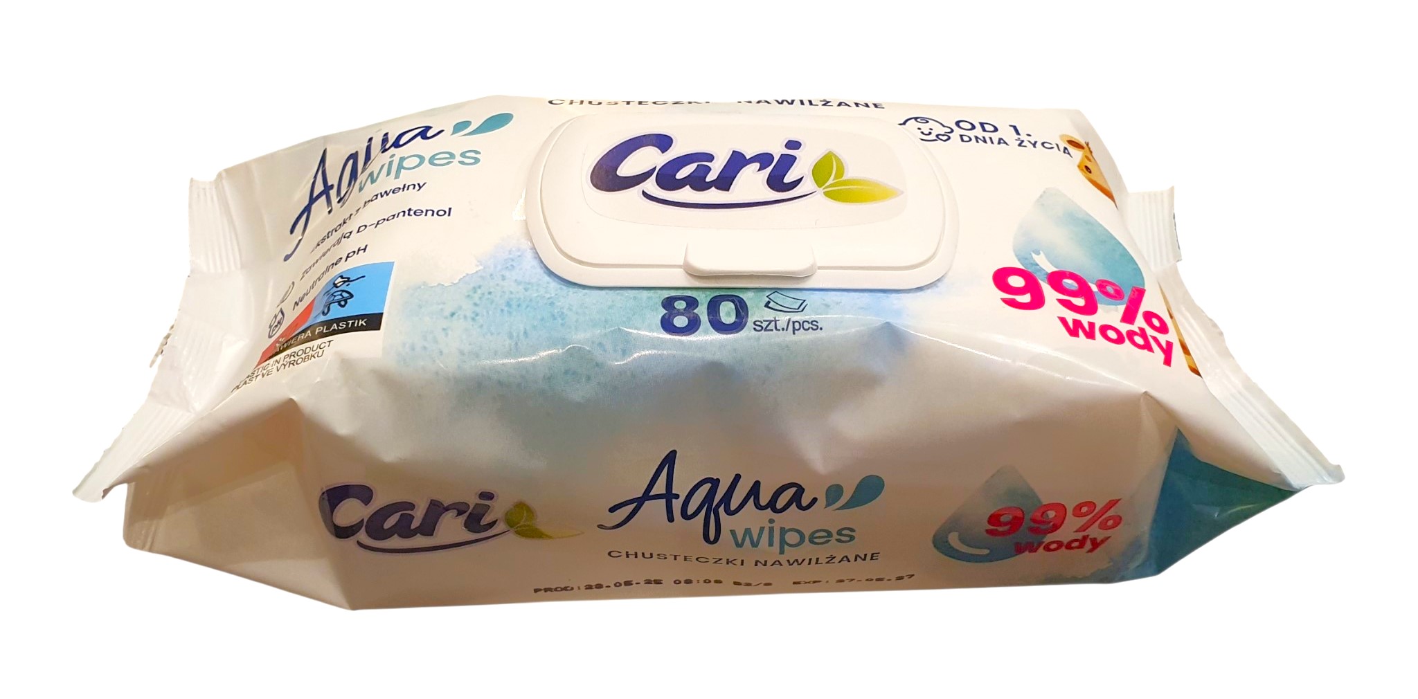 Chusteczki nawilżane Cari Aqua wipes 80 szt. dla dzieci i niemowląt od 1 dnia życia