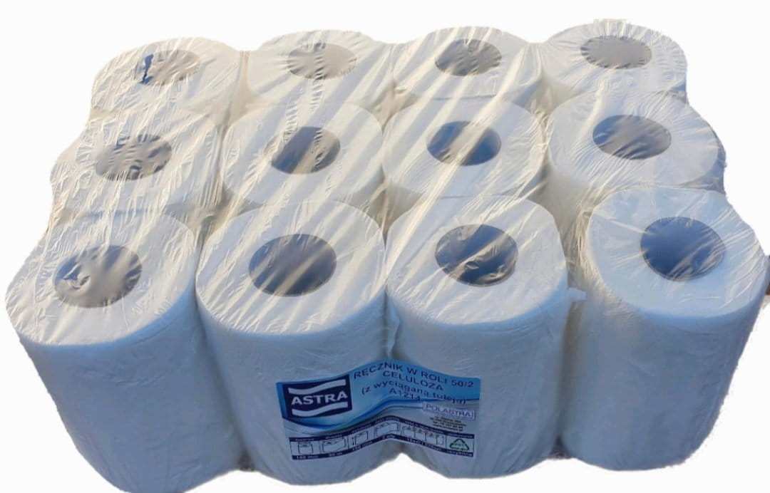 Ręczniki papierowe w roli 50m 12 rolek 2-w Astra fi 14
